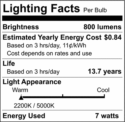• LIGHT BULB FIXTURE: A19 LED with E26 medium base, 120 Volts, 450 Lumens brightness, 5 Watts (replaces 40 Watts), and rated for 15,000 hours